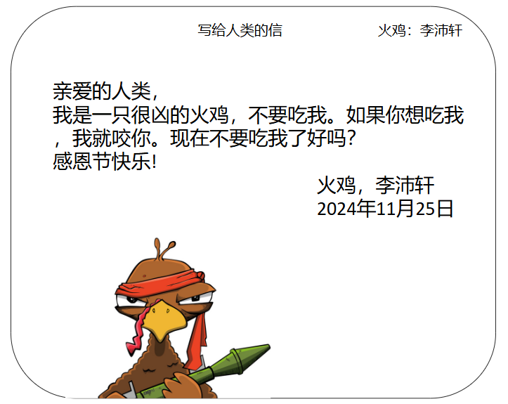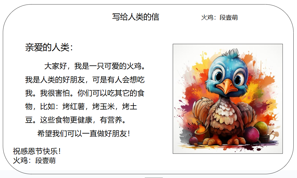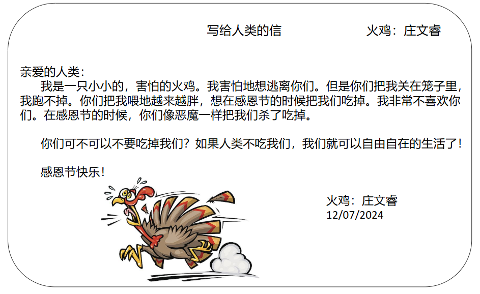 三年级project:火鸡的信,每只火鸡都很有想法呢!