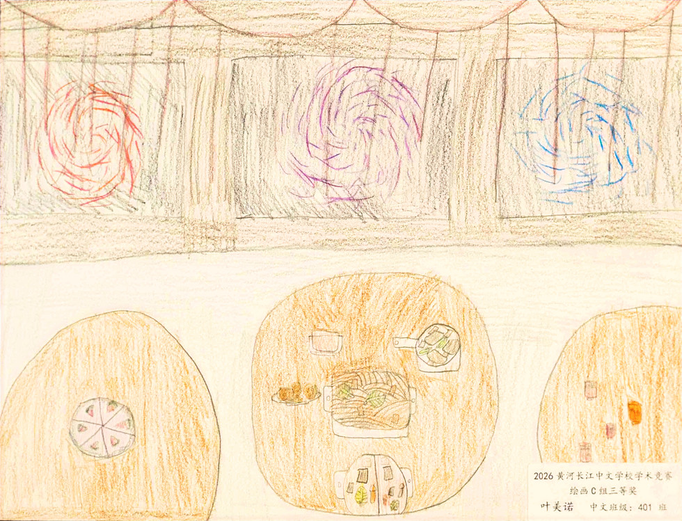 在春节联欢会的展区里,是另一番令人驻足的风景。中国印章的朱红、竹简的古朴、线装《本草纲目》的雅致、青花瓷的清润……二十四节气的流转、成语故事的智慧、诗歌的韵律、毛笔书法的墨香,在孩子们的作业与作品中一一呈现。